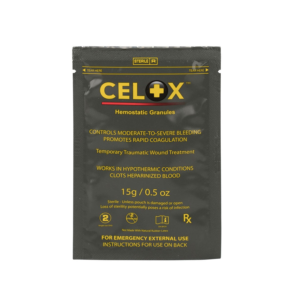 CELOX is an over-the-counter blood clotting agent that delivers fast first aid care for all types of bleeding--from cuts, scrapes, and nosebleeds to moderate and severe bleeding. CELOX is so effective, it's been proven to work even in the presence of common anticoagulant blood thinning medications--a welcome breakthrough for the 40 million Americans who are on blood thinners and who can suffer from serious bleeding issues. Proven to Be Effective Originally developed to assist military medics, CELOX provides fast, effective first aid for men, women, children and older adults, and it's easy to use even if you have no first aid or medical training. CELOX has even been proven to work in the cold (in cases of hypothermia). CELOX First Aid products are easy to carry in your purse, briefcase, backpack, gym bag, glove compartment, tool box, or tackle box. Having CELOX First Aid products on hand instantly makes your workshop, garage, car, boat, or home a safer environment.nnCELOX empowers people to respond more effectively in any bleeding situation. If a bleeding emergency happens, you'll be ready. CELOX is so effective, it helps treat injuries that require professional medical attention, so you can be proactive until professional help arrives. When every second counts, CELOX puts time on your side.