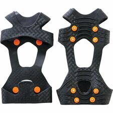 Ergodyne TREX 6300 Slip-On Ice Cleats for Boot, Shoe - Rubber - Black Trex 6300 Slip-On Ice Cleats are lightweight ice grips for boots to prevent slip-and-fall injuries on the ice. With eight replaceable spike grips, these ice cleats provide tenacious traction and extra stability on ice and snow. Stretchable rubber with textured interior hugs the toe and heel of your shoe or boot. Enjoy full-foot traction from rugged, heat-treated, carbon steel studs that line the length of the foot with a thicker, under-sole tread and a reinforced toe cap for more durable wear and better grip. Large thumb tabs on the heels allow easy on and off. One-piece, reliable cleats are flexible in temperatures as low as negative 40 degrees Fahrenheit (negative 40 degrees Celsius) and won't break in cold temperatures. They are lightweight and compact so cleats are easy to store. Large size fits U.S. men's footwear from 8 to 11.