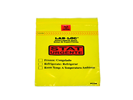 Elkay’s Lab-Loc® Reclosable Seal Top Specimen Bags with Seal-N-Rip® removable biohazard symbols provide an excellent means for securely transferring specimens in hospital and medical environments while helping to save on disposal costs. The bags have a special removable biohazard symbol which can be torn off and allows the bags to be disposed of with regular waste if they are uncominated.Their three wall construction provides a handy outer pouch to contain accompanying paperwork during specimen transfer. Since the bags are manufactured in a Trade Agreement Act (TAA)-designated country, they conform with US governmental requirements and are eligible to be sold to governmental organizations such as the department of Veterans Affairs (VA). They are printed in both English and Spanish and available in a variety of sizes, colors and printed messages for various types of specimens. The bags are inner-packed in individually-marked and barcoded dispenser packs for convenience.