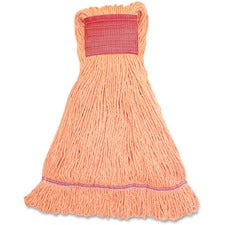 Genuine Joe Synthetic Blend Large Mophead Large - Rayon, Cotton, Rayon - 1 Each Large mophead with a wide headband is ideal for general cleaning and disinfecting. Synthetic blend fibers (rayon and cotton) absorb six to seven times their weight. Mop offers a limited break-in period so you can start mopping sooner. Looped ends provide greater durability and launderability. Wide headband allows added launderability and use with all handle styles. 5" mesh headband with "S" zig-zag stitch pattern provides a more durable headband.