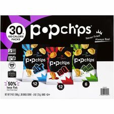 Green Rabbit Popchips Variety Pack No Artificial Flavor, Cholesterol-free, Preservative-free, Trans Fat Free, Gluten-free, No Artificial Color - Barbeque, Sour Cream & Onion, Sea Salt - 0.80 oz - 30 / Carton Popchips transform potatoes with heat and pressure, delivering perfectly seasoned crunch that rivals traditional fried chips. Enjoy bold flavor, crisp texture and real ingredients built for pure enjoyment. Variety pack includes flavors like Barbeque, Sea Salt and Sour Cream and Onion. Snack bag portions work perfectly for stocking your pantry, office breakroom and more.