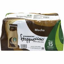 Green Rabbit Starbucks Frappuccino Bottles Mocha - 15 / Carton Starbucks Chilled Frappucinos make starting your day easier than ever. Each bottle offers perfectly blended Arabica coffee, reduced-fat milk and classic Mocha flavoring. Creamy, ice-cold coffee drink helps start your morning off right and can even cure your mid-afternoon slump. Convenient size and packaging makes taking your favorite coffee to-go even easier. Enjoy during your morning commute or your lunch break.