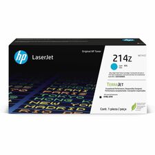 HP 214Z Original Laser Toner Cartridge - Cyan - 1 Each HP 214Z Ultra High Yield Original TerraJet Toner Cartridge offers TerraJet technology for a lower carbon footprint, efficient toner use for less waste and outstanding quality printing with built-in security. Highly efficient, toner particle design with protective shell and low-melt formula delivers more true-to-life colors and sharper details in your HP Color LaserJet Enterprise 6700dn and 6701dn Printers. Innovative, toner particle design works efficiently so you get more pages per cartridge size. Print consistent color over the life of the cartridge with less time calibrating while enjoying consistent performance from the first page to the last. Genuine HP cartridge is made with tamper-resistant, HP proprietary firmware and secure cartridge chips as well as tamper-evident packaging and security labels for safe tracking. Cartridge yields approximately 28,000 pages.