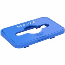 HLS Commercial Rectangular Open Top Recycle Bin/Lid Rectangular - Gray - 1 Each Rectangular Flip Open Recycle Lid Attachment can transform three different HLS Commercial Stainless Steel Rectangular Open Top Cans into recycling bins. It fits three sizes: 16-gallon, 18-gallon and 21-gallon cans. It is easy to place on the cans and easy to remove for easy separation of recycling and non-recyclables. Plastic lid is the blue shade typically used for recycling. "Recycle" is clearly printed in white to indicate bin contents. Versatile opening allows various types of recyclables from cans to cardboard. Push-button release allows easy access to the bin.