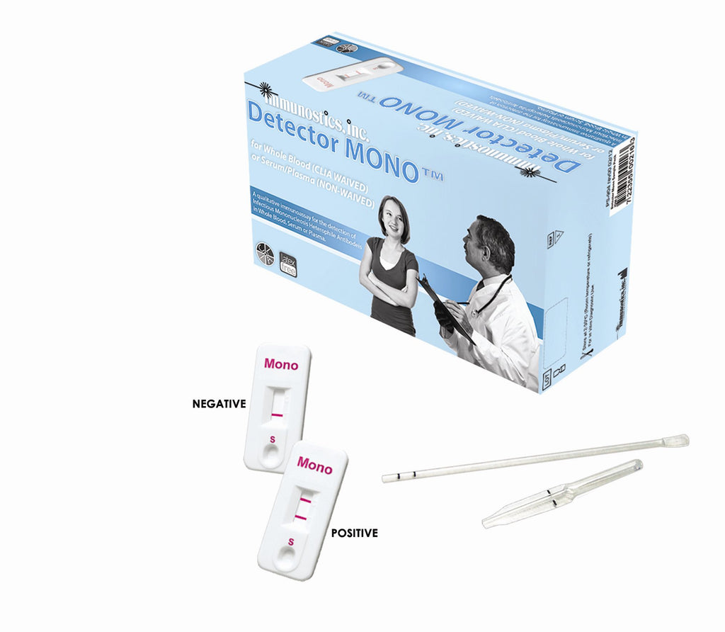 A qualitative immunoassay for the detection of Infectious Mononucleosis Heterophile Antibodies in Whole Blood, Serum or Plasma. (test cassette) CLIA waived for Whole Blood