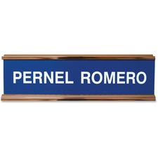 Xstamper Aluminum Double-sided Desk Holder 8" Holding Width x 2" Holding Height - Rectangular Shape - Double Sided - Aluminum - Gold - 1 Each Double-sided desk sign can show off your name or significant message. It does not need a holder. Instead, its easel style sets up easily on your desk. Choose from more than 35 fonts and more than 30 plastic insert colors. Frame is gold-colored. Contact customer service to customize your anodized aluminum, 2" x 8" sign.